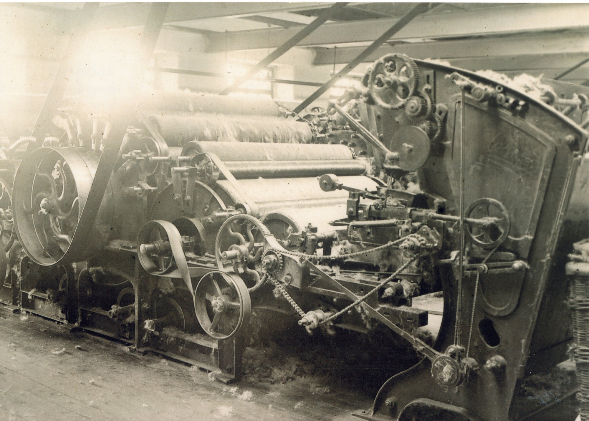 Hopper Feed on right of photo full of scoured wool going into the carding engine