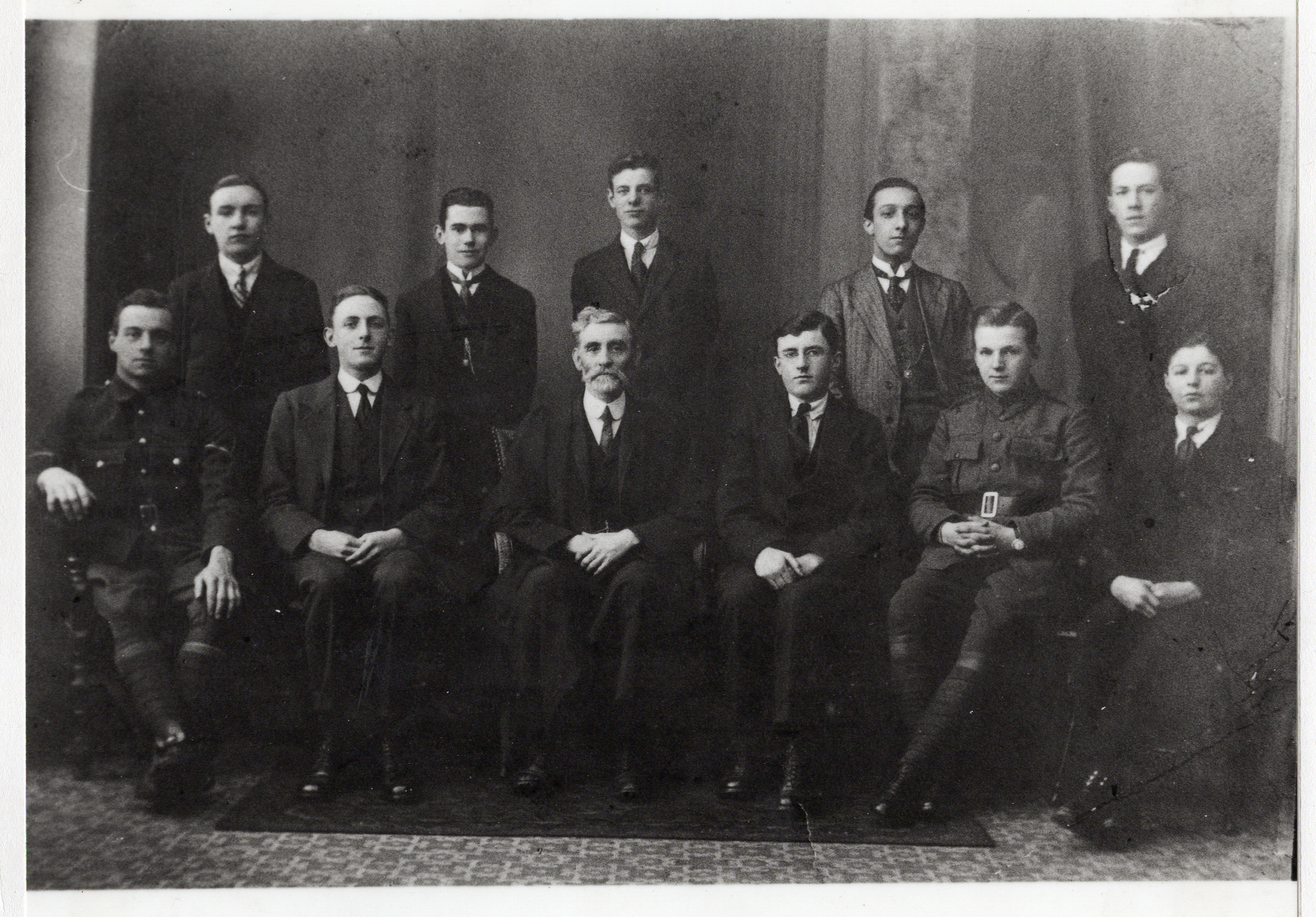 Photograph of old boy graduates with master at Salts Boys Boys High School 1918