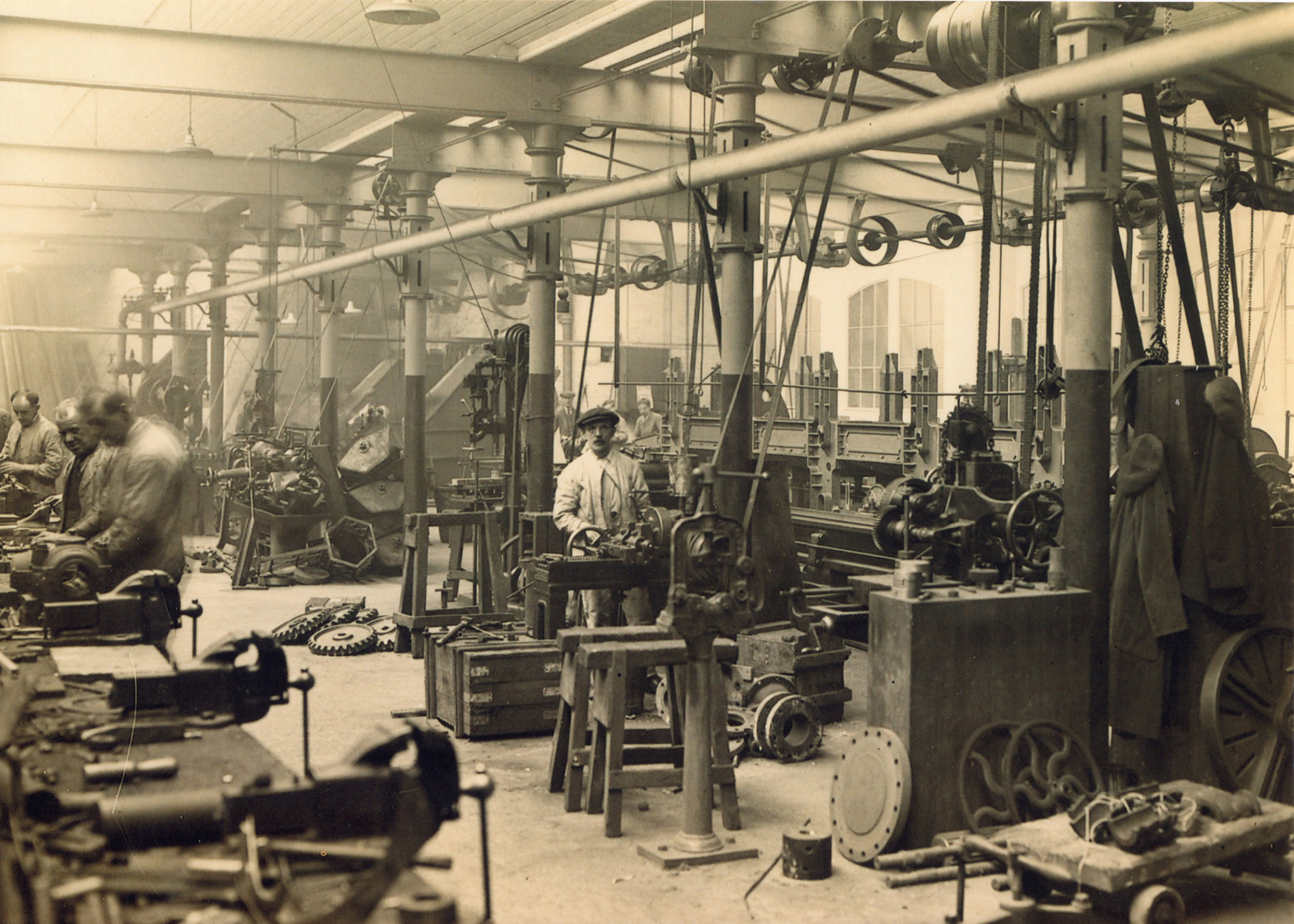Photograph shows the inside of an engineers shop