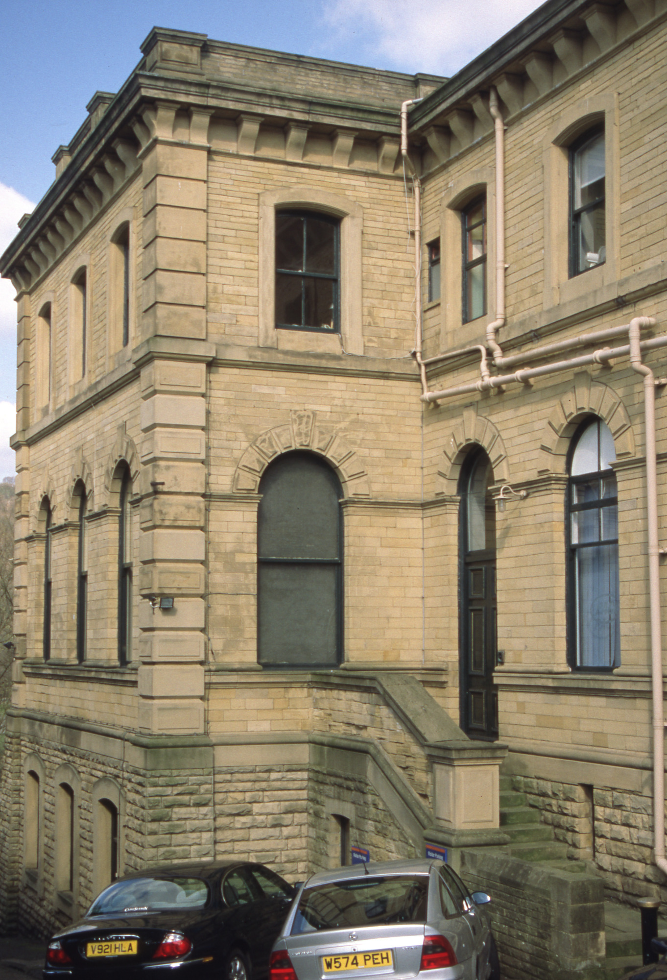 Entrance to Titus Salt's office. One of a collection of Slides relating to Saltaire compiled by Albert Bowtell.