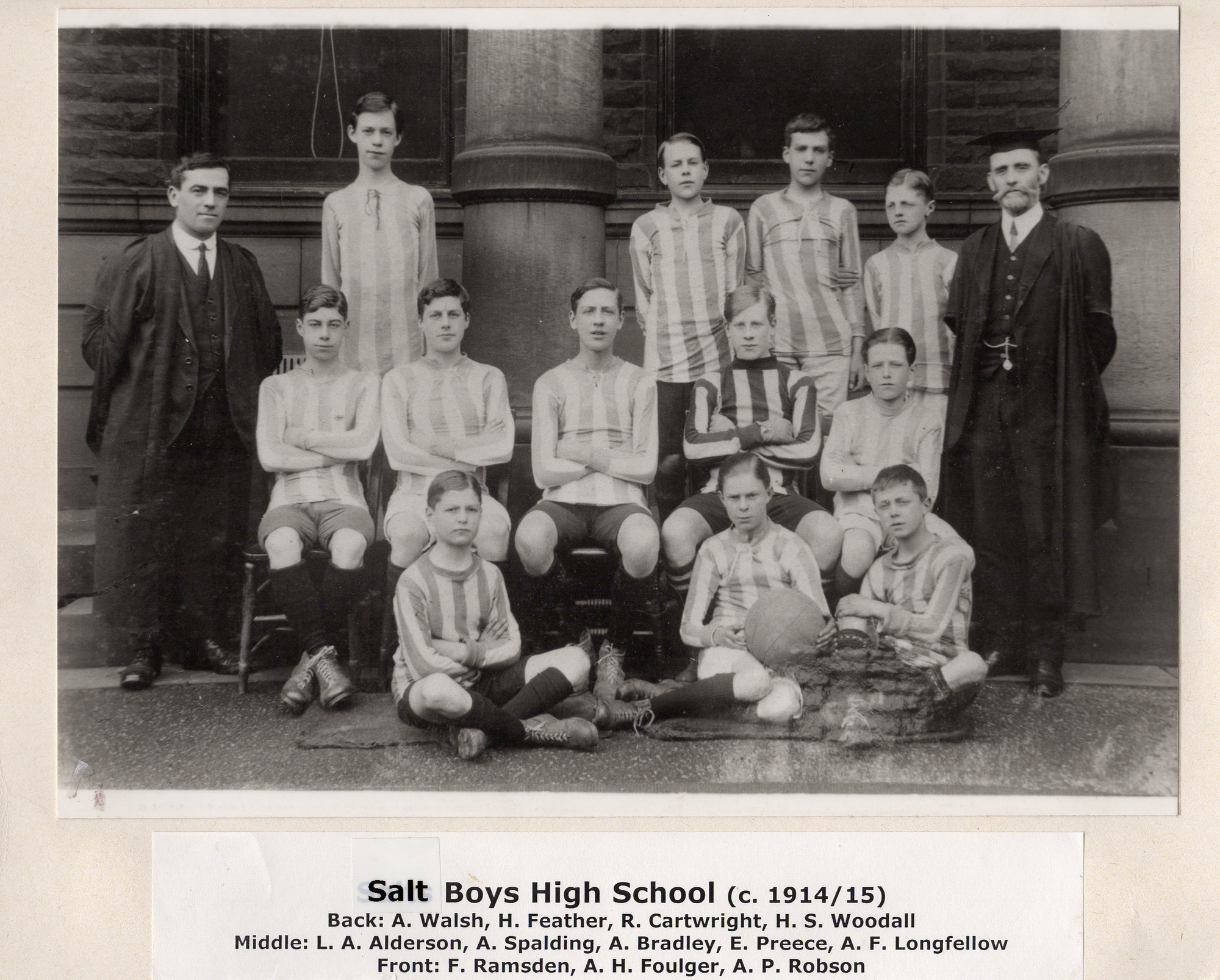 Card-mounted photograph of football team at Salts Boys High School c.1914/15 (Team Identified)