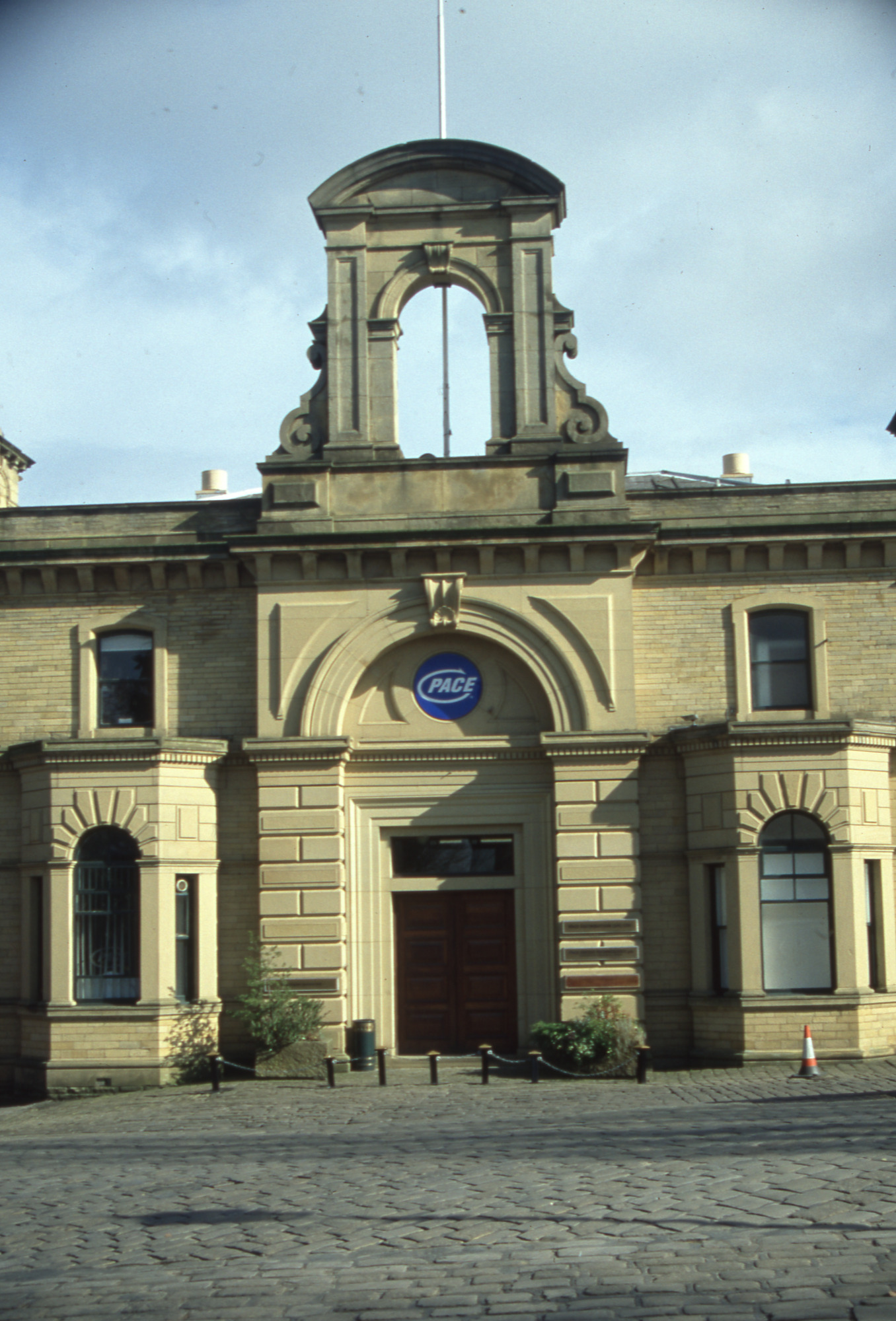 Mill office entrance. One of a collection of Slides relating to Saltaire compiled by Albert Bowtell.