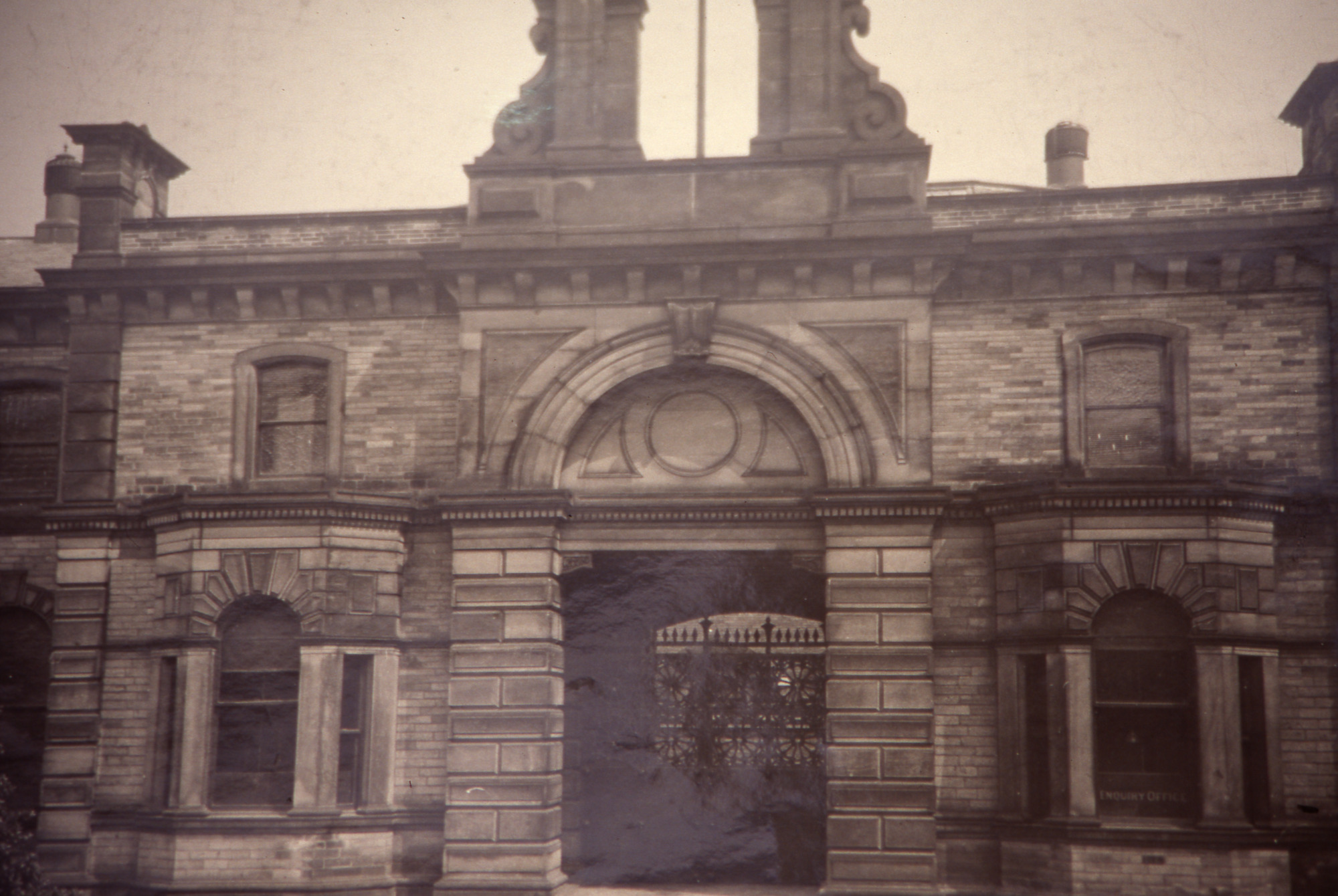 Mill offices and yard. One of a collection of Slides relating to Saltaire compiled by Albert Bowtell.