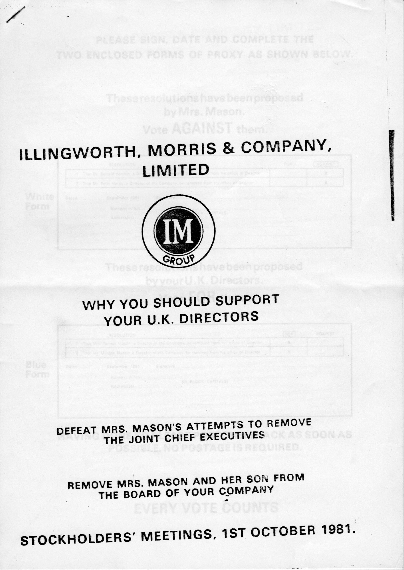 Illingworth, Morris stockholders meeting over Mrs Mason's complaints