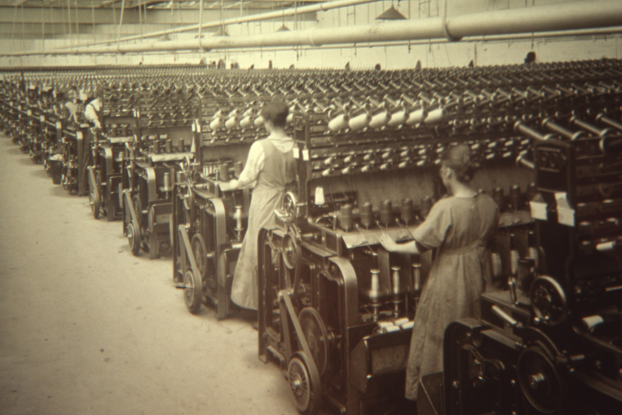 Photograph shows a spinning room