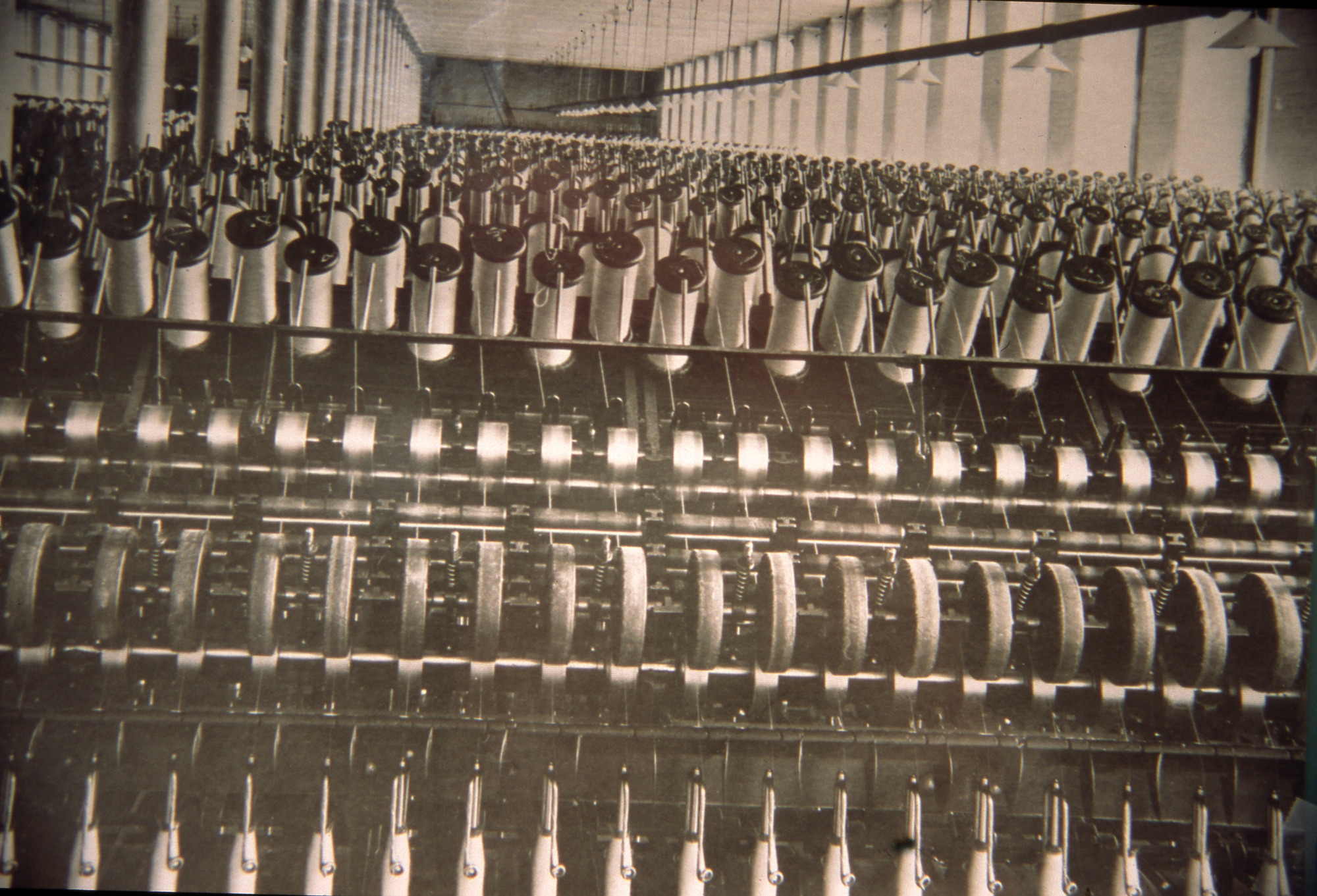 Spinning frames. One of a collection of Slides relating to Saltaire compiled by Albert Bowtell.