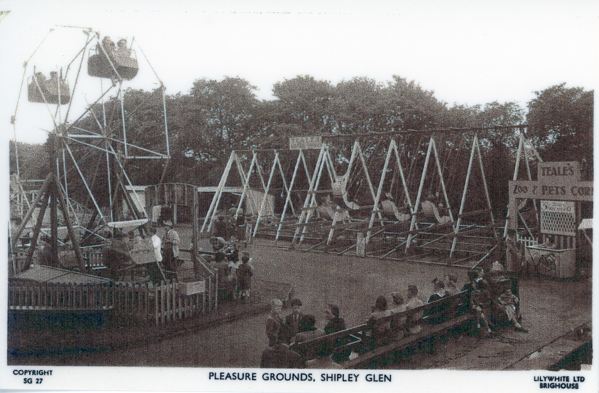 Copy of postcard of the swings in the Pleasure Grounds on the Glen