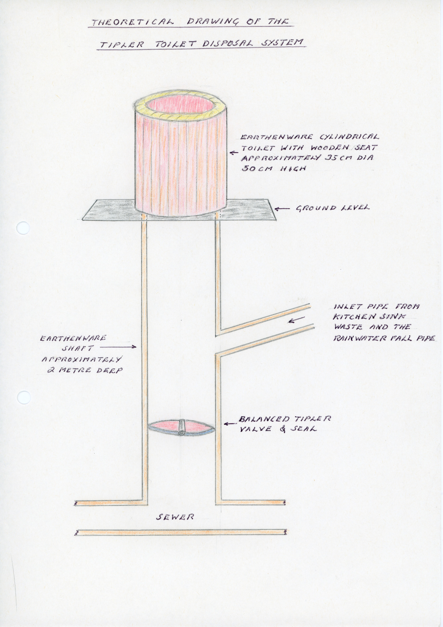 Two page description of the operation of a 'Tippler Toilet' as used in Saltaire up to the early twentieth century. One page is a hand drawng of the toilet and its disposal system. One page is a handwritten description of the operation.