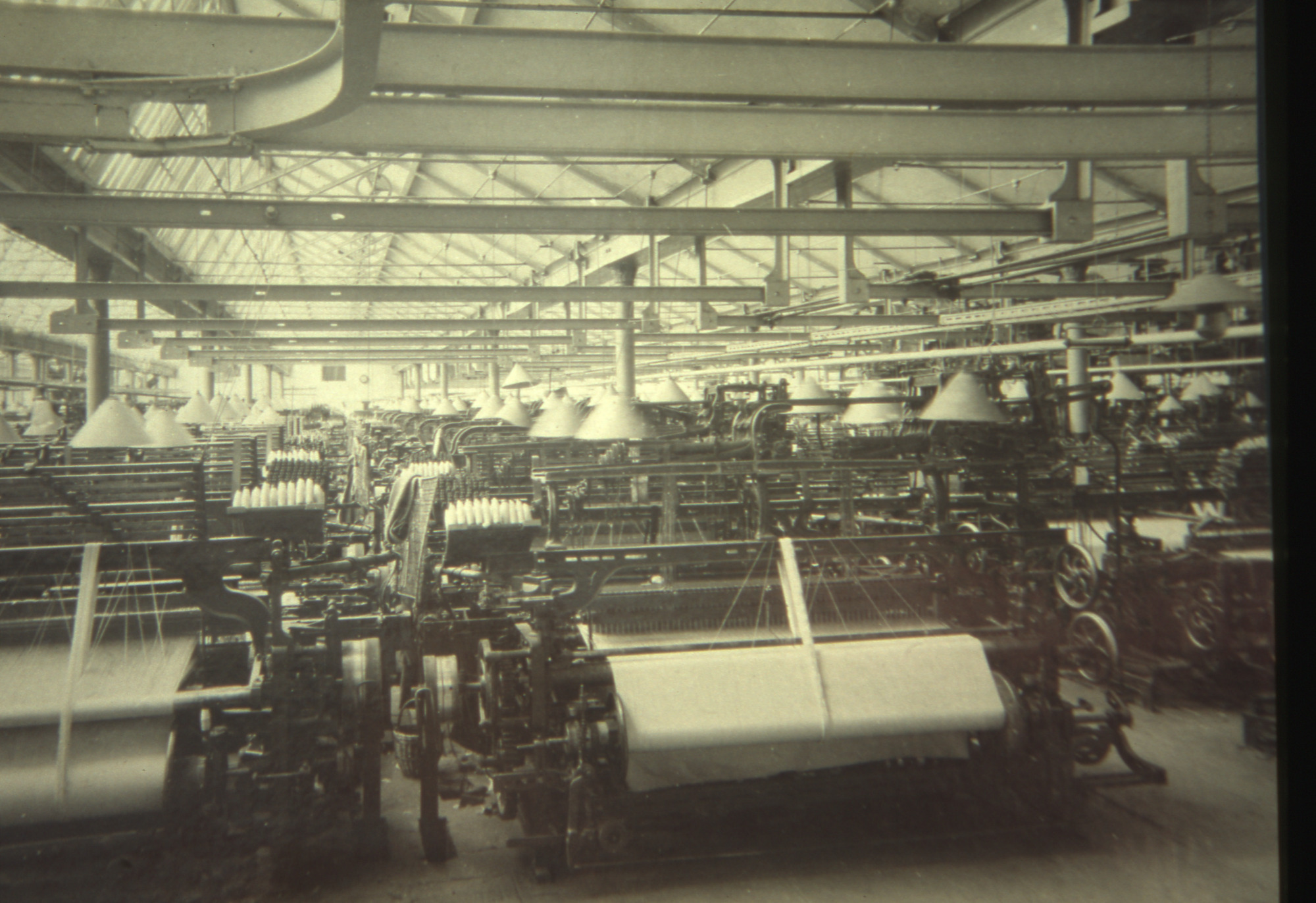 Weaving (99). One of a collection of Slides relating to Saltaire compiled by Albert Bowtell.