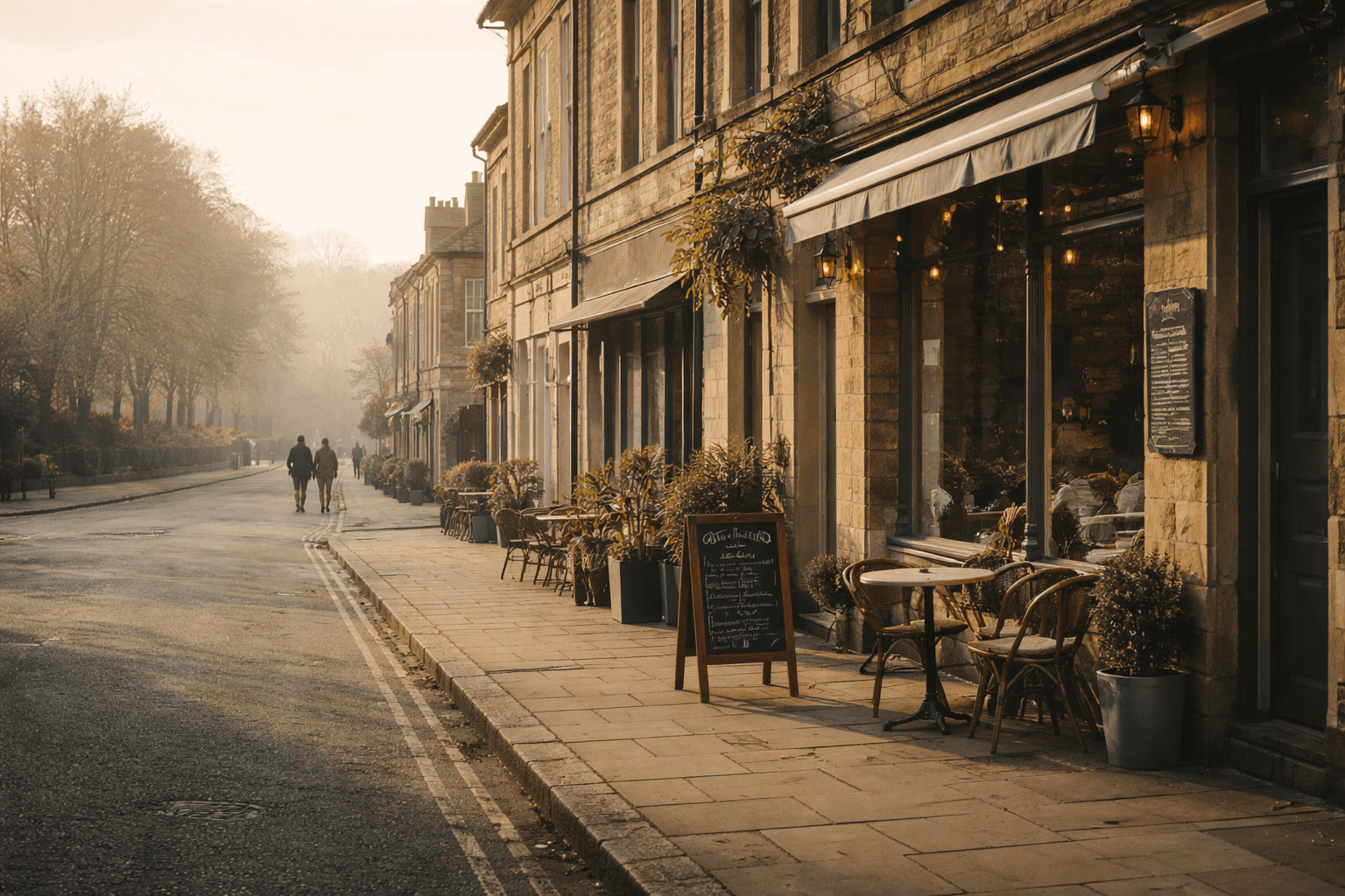 Coffee spots cluster around the village core, Salts Mill and Roberts Park — just a few minutes apart. For a scenic takeaway, walk canal-side.